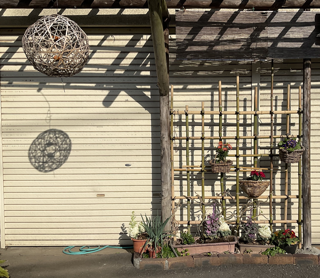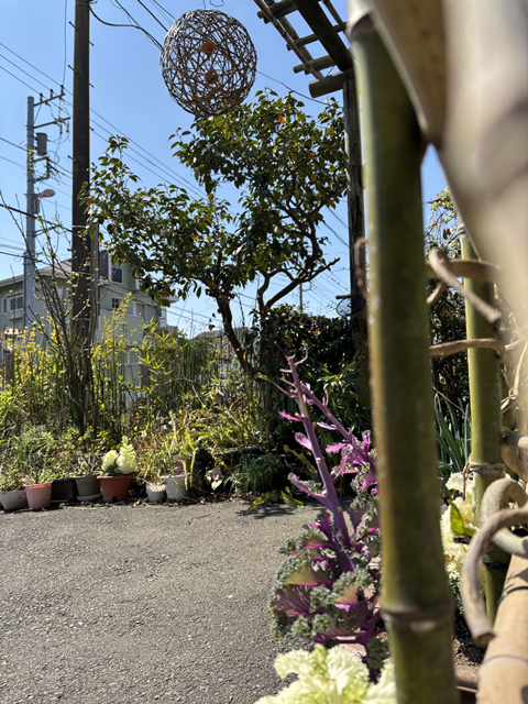 小鳥カゴのそばの葉牡丹が「これ見よがし」の狙い撃ち。