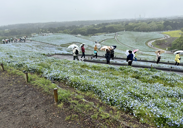 ネモフィラ達は広大な丘に雨にけむり、少し灰色がかり待っててくれた。