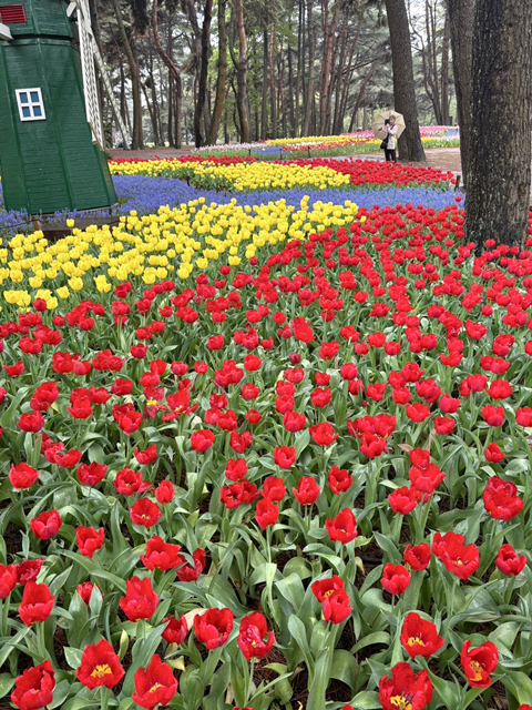 ところがそこは広い国営公園。「こんな日は私達に任せなさい!」とチューリップ達が艶やかに迎えてくれて、その種類の多さ色彩のハーモニー、飽きさせない。